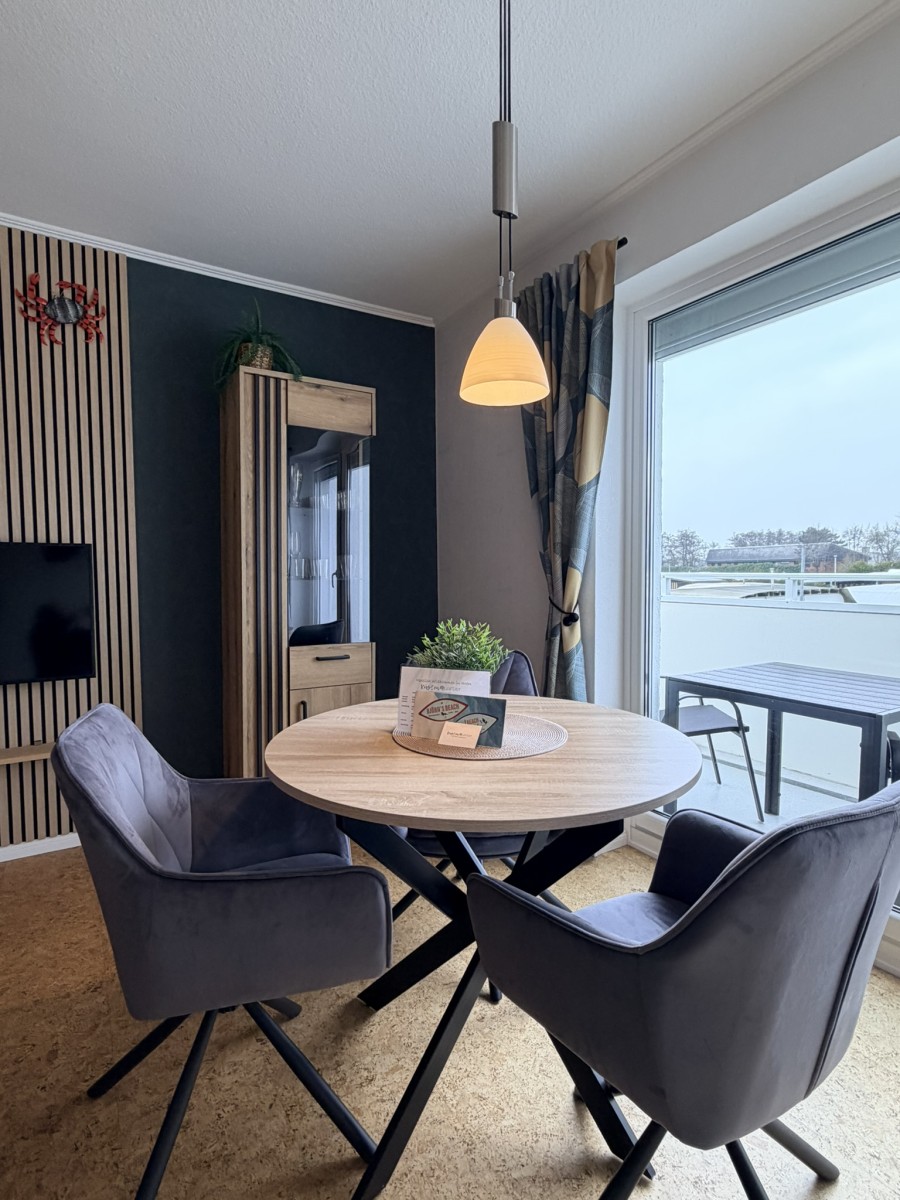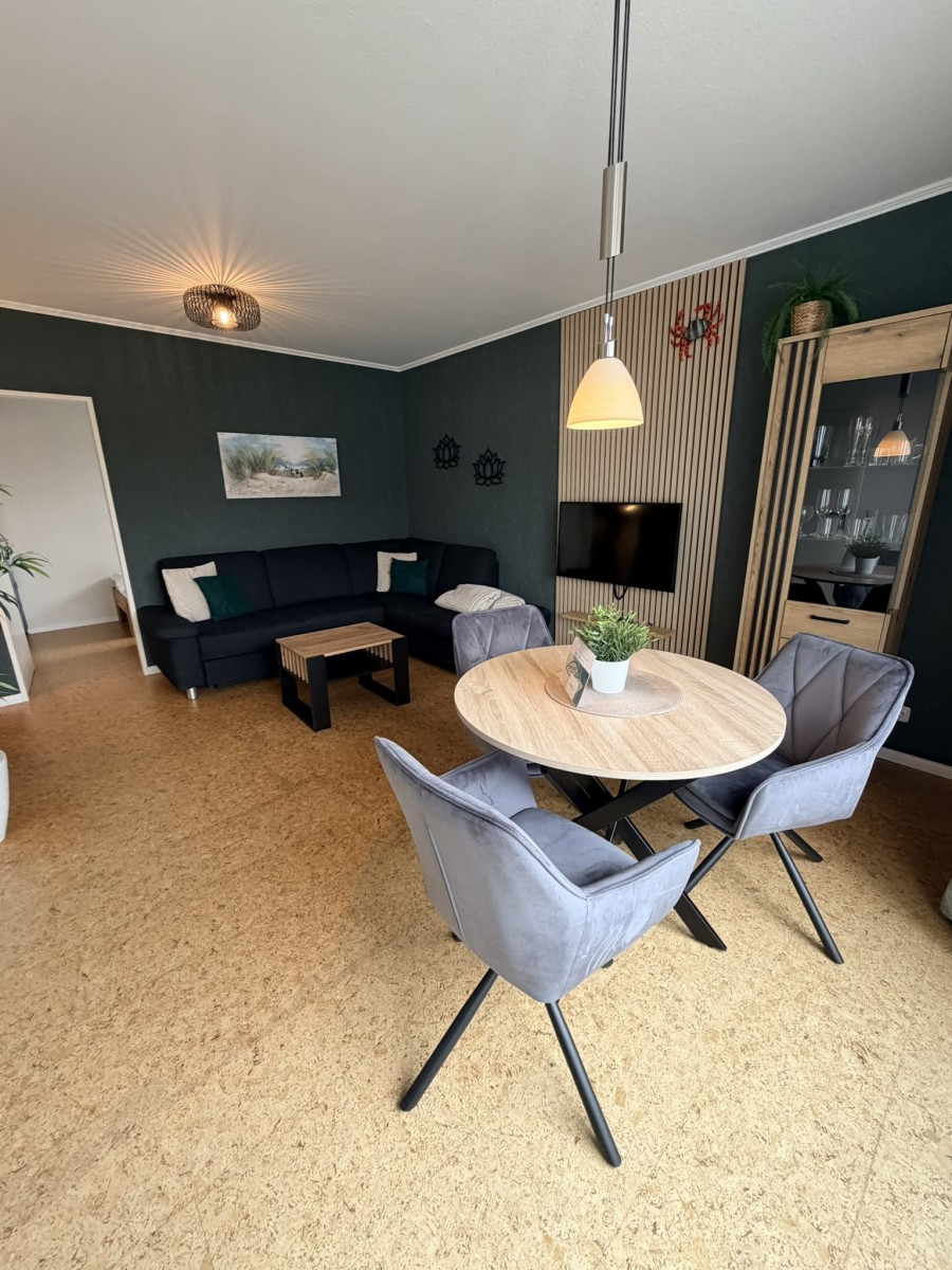 Die allergikerfreundliche Wohnung befindet sich im Hochparterre des Hauses Poseidon und ist ideal für alle, die Ruhe und Nähe zum Meer suchen. Die voll ausgestattete Küche mit Esstisch lädt zum gemeinsamen Kochen und Verweilen ein. Der renovierte Wohnbereich ist mit einer gemütlichen Eckcouch ausgestattet, die sich zusätzlich als Schlafgelegenheit nutzen lässt.