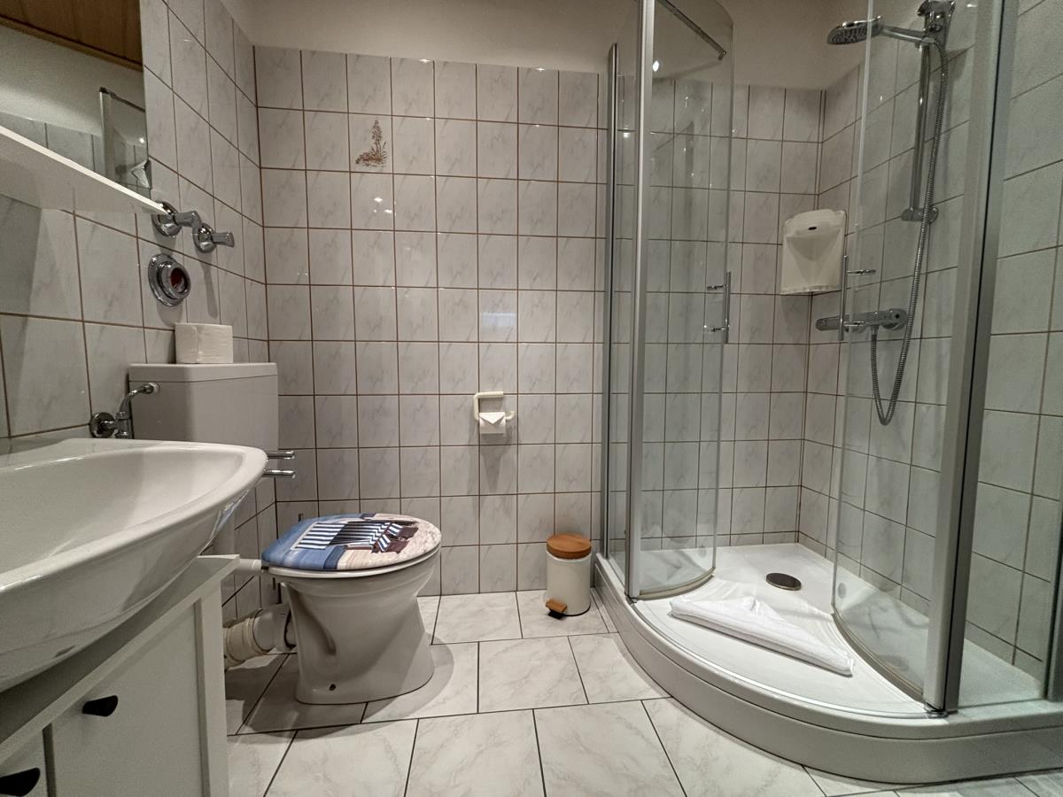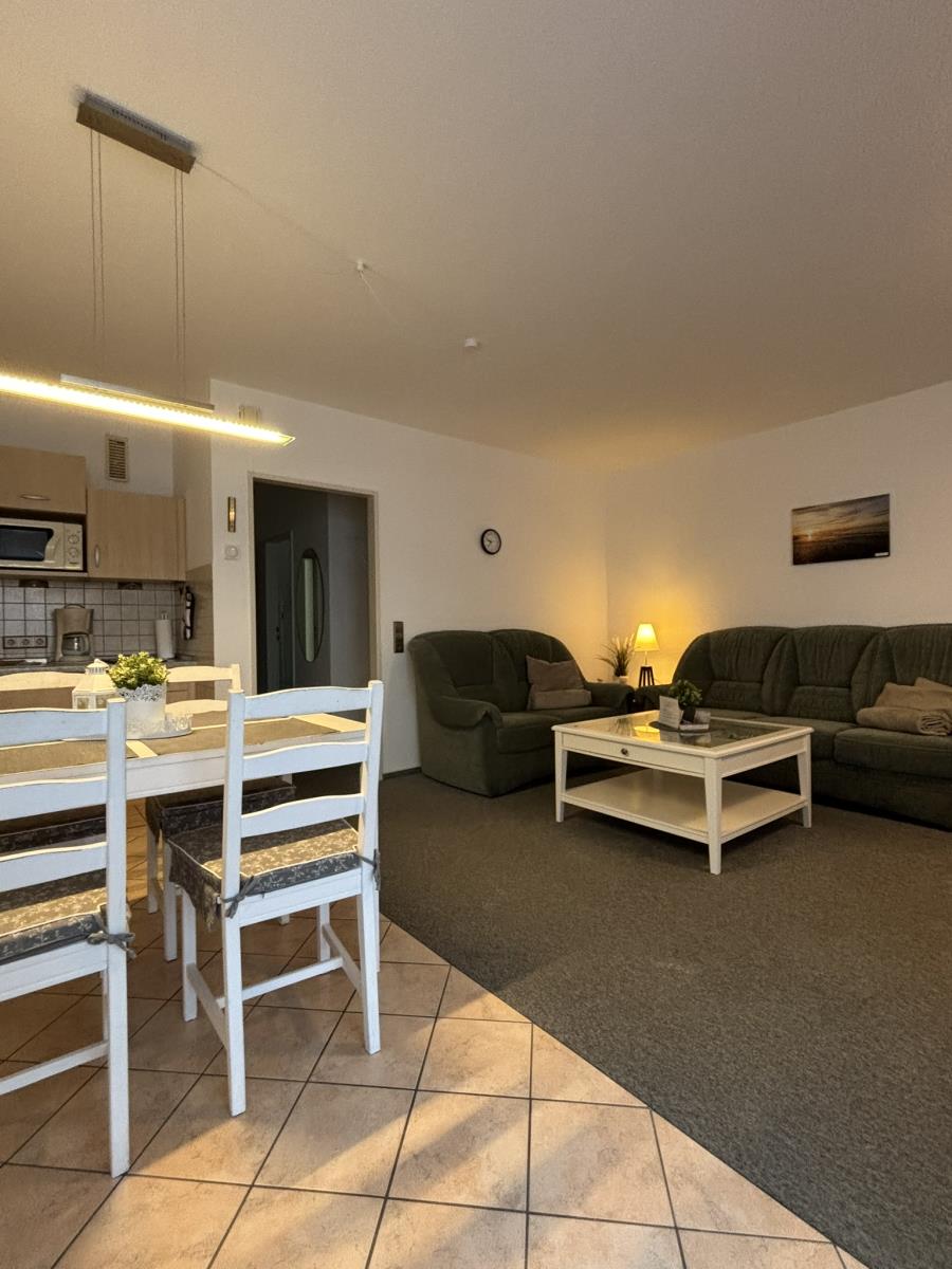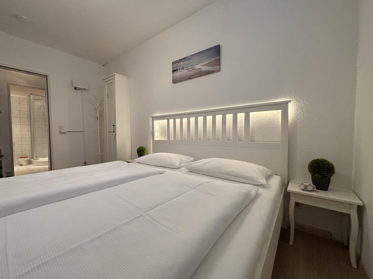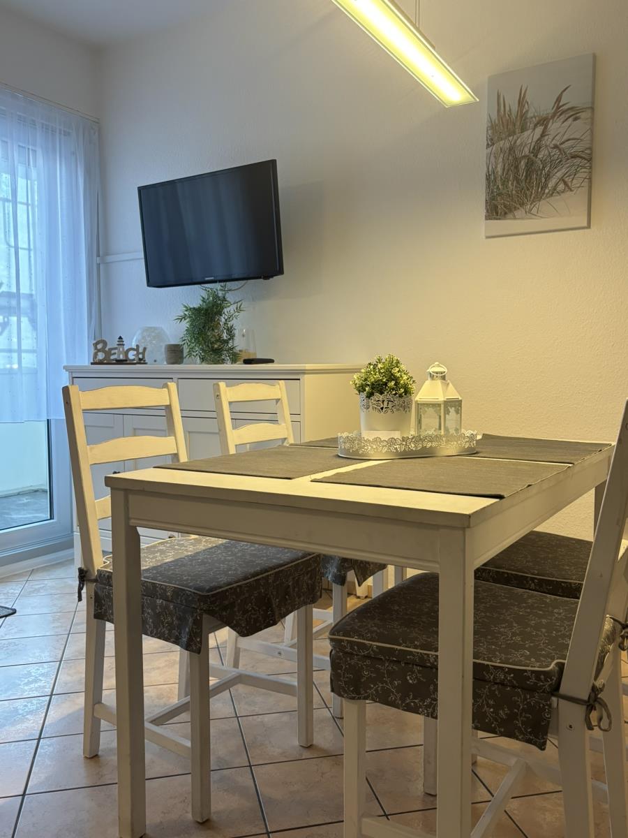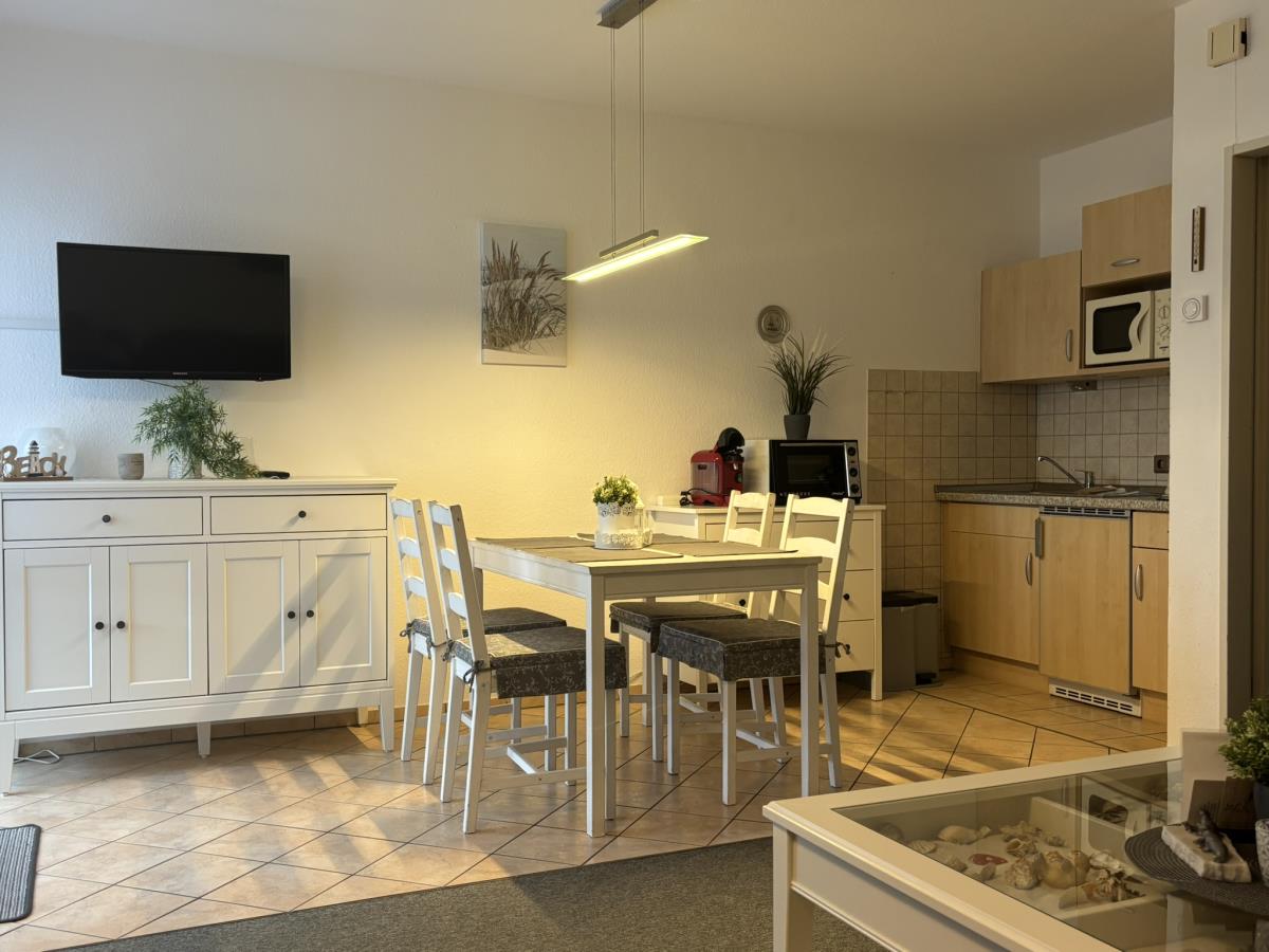 Ruhiges 2-Raum Apartment in absoluter Strandnähe ca. 200 m, mit 54 m² Wohnfläche und Fussbodenheizung für bis zu 3 Personen. Dieses Apartment mit Balkon liegt in der 1. Etage Hochparterre im Haus Poseidon in unmittelbarer Nähe zum Strandübergang. Die helle, vollausgestattete Küche lädt zum ausgedehnten Frühstück und Verweilen ein. Der Wohnbereich mit TV bietet neben einer gemütlichen Couch, eine Sitzgruppe und Essbereich, ein Schrankbett dient als zusätzliche Schlaffunktion. Das Schlafzimmer ist mit einem Doppelbett (180x200) und Kleiderschrank ausgestattet. Das Duschbad verfügt über eine Dusche, Waschtisch und Spiegel. Das Apartmenthaus bietet eine Saune, Waschmaschine und Trockner gegen Gebühr. Dieses Apartment erwünscht keine Haustiere.