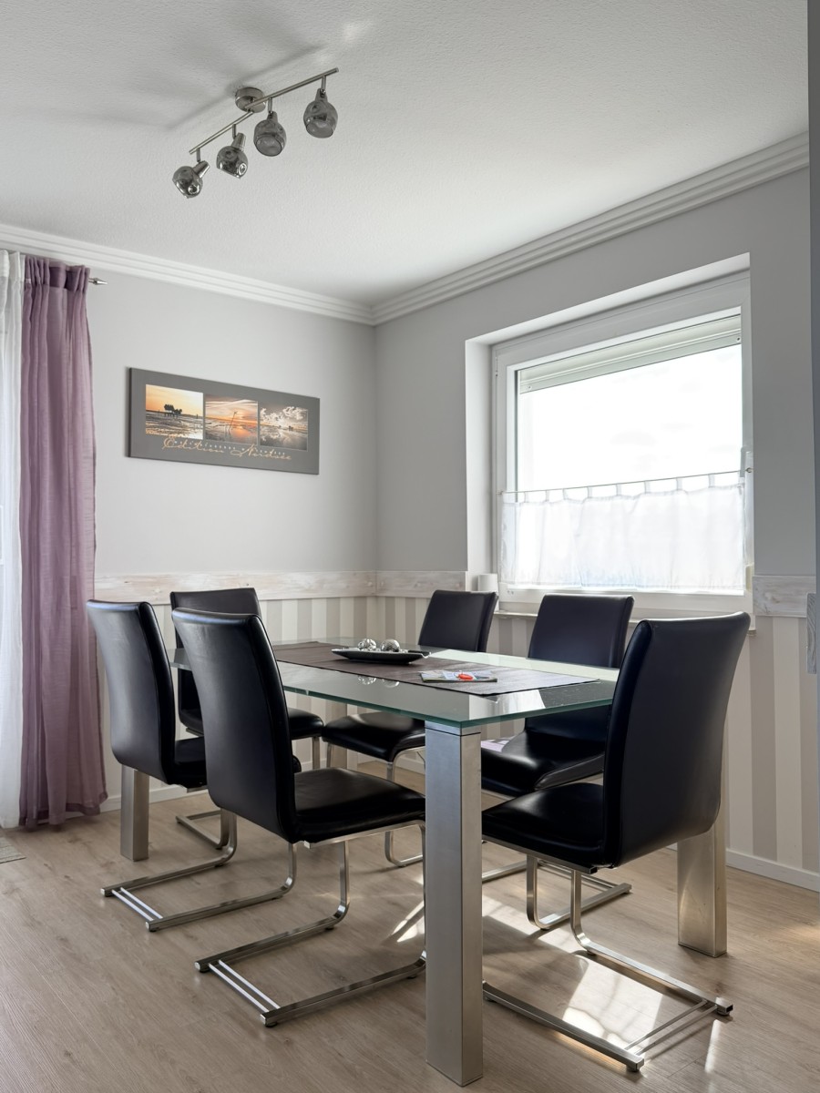 Die Wohnung lädt mit einem geschmackvoll eingerichteten Wohn- und Essbereich zum Entspannen und Verweilen ein. Selbstverständlich verfügt die Wohnung auch über kostenloses W-LAN. Die Essgruppe hält genügend Platz für alle bereit, einschl. eines Kinderstuhls für Kinder ab ca. 3 Jahre. Die sehr gut ausgestattete Küche lässt keine Wünsche offen und ist perfekt für die Selbstversorgung. Bei schönem Wetter kann schon bei Sonnenschein auf dem Balkon gefrühstückt werden.