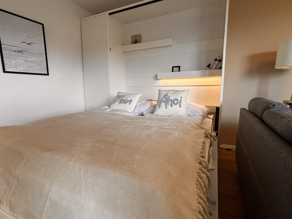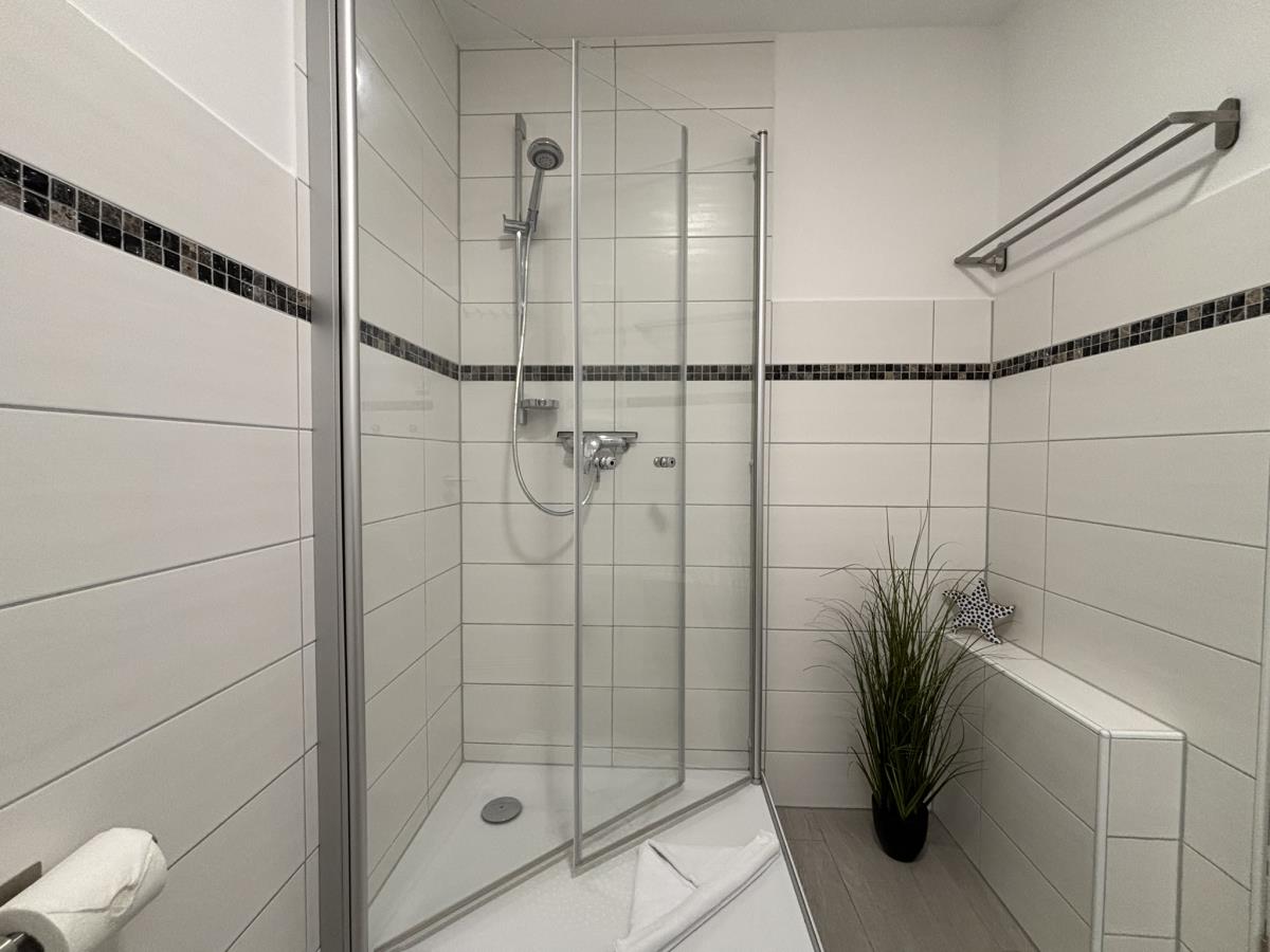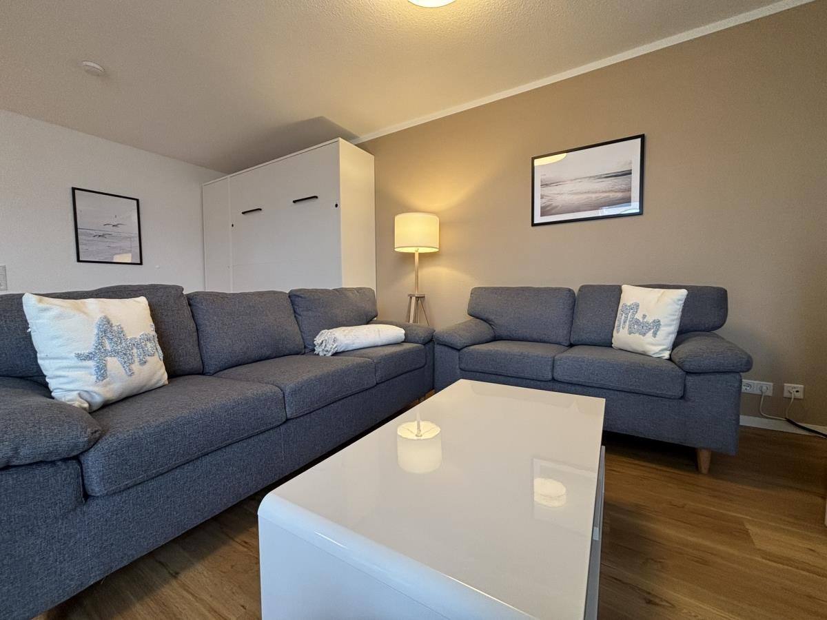 Die Wohnung bietet Platz für 2 bis 4 Personen und überzeugt mit einer gemütlichen Einrichtung. Der Wohnbereich ist mit einem TV ausgestattet und umfasst eine bequeme Couch, einen Essbereich sowie einem modernen und komfortablen Schrankbett (160x200) - ideal für eine Familie mit Kindern. Die Preise sind für eine Belegung von 2 Personen, für jede weitere Person berechnen wir einen Aufschlag von 10,00 € pro Nacht. Die Endreinigung ist ab der ersten Nacht eingerechnet.