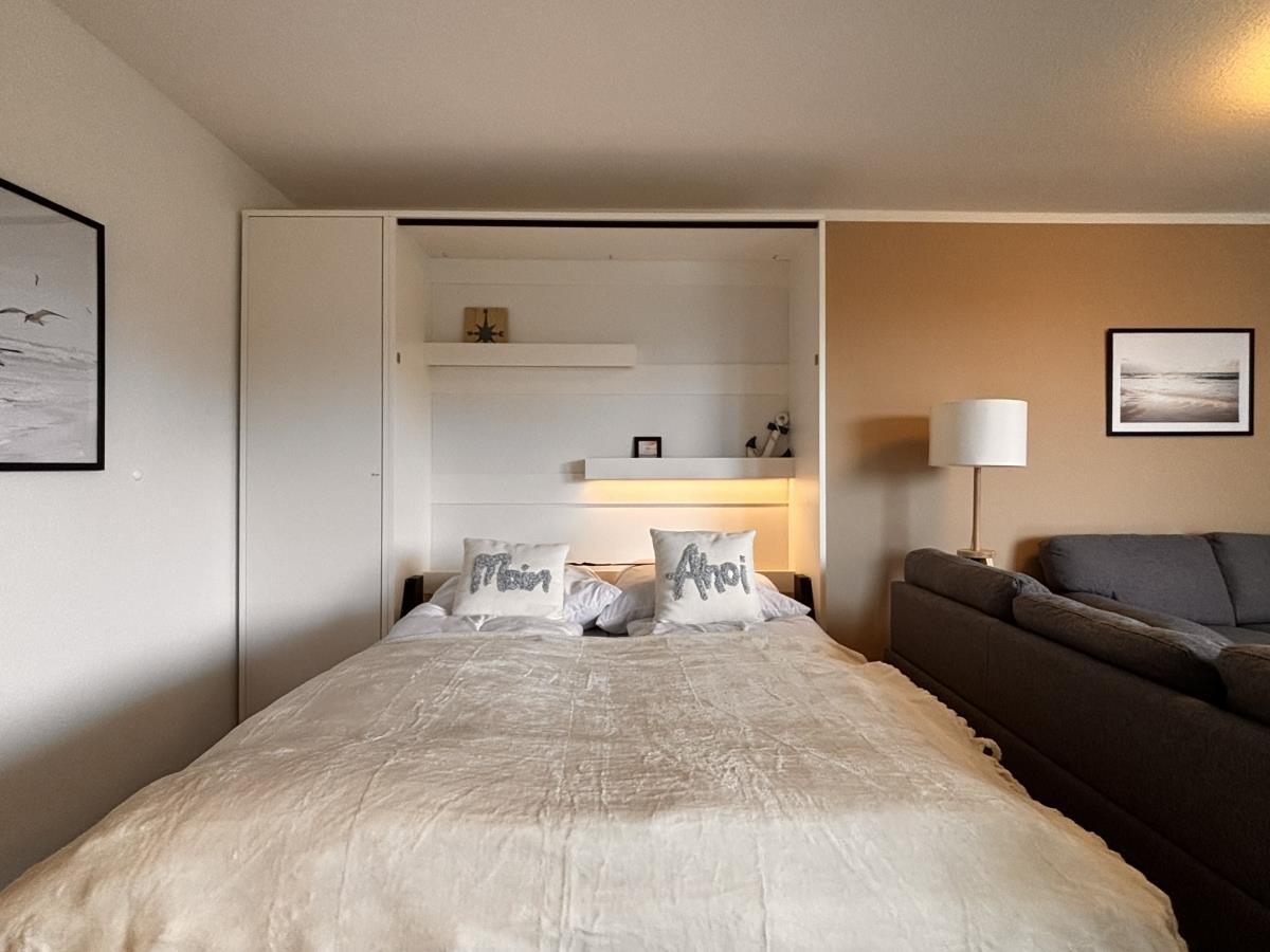 Die voll ausgestattete Küche lässt keine Wünsche offen und ist perfekt für die Selbstversorgung. Im Schlafzimmer erwarten Sie ein Doppelbett (180x200) sowie Stauraum im Kleiderschrank für Ihre persönlichen Dinge.