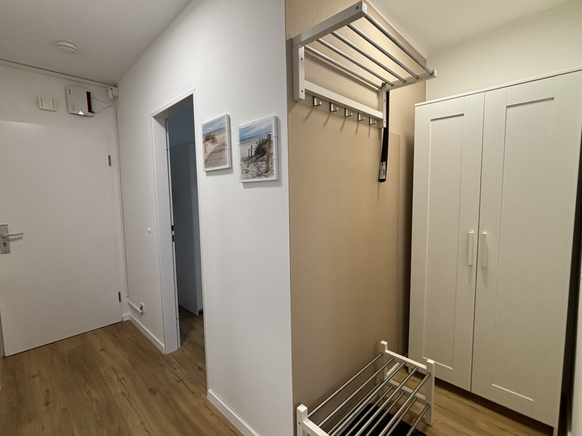 Willkommen in dieser stilvollen und ruhigen 2-Raum-Ferienwohnung im Haus Poseidon, die Ihnen auf 48 m² alles für einen unvergesslichen Urlaub bietet. Die Wohnung liegt in der 4ten Etage und besticht durch eine traumhafte Aussicht sowie einen Balkon, auf dem Sie die frische Luft genießen können. Der Strand ist nur 200 Meter entfernt, und ein Fahrstuhl bringt Sie bequem bis in die 3te Etage, das letzte Stockwerk erreichen Sie dann über das Treppenhaus.