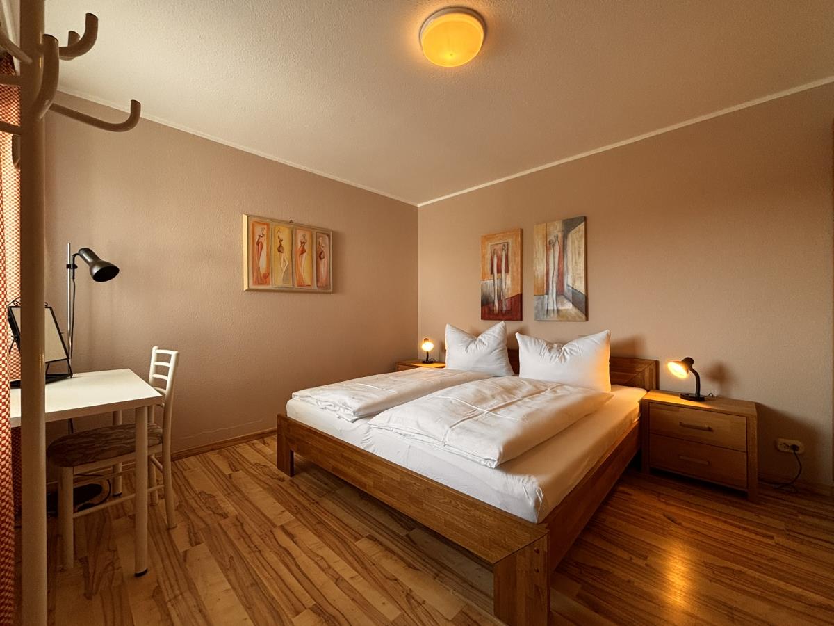 Die kleine, aber voll ausgestattete Küche lässt keine Wünsche offen und ist perfekt für die Selbstversorgung. Im Schlafzimmer erwartet Sie ein komfortables Doppelbett (180x200) sowie ein kleiner Schreibtisch und viel Stauraum für Ihre persönlichen Dinge.