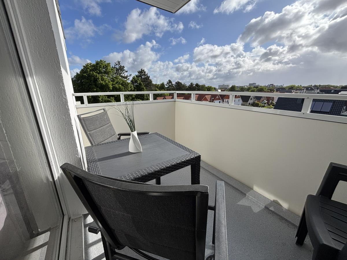 Die Wohnung liegt in der 4. Etage und besticht durch eine traumhafte Aussicht sowie einen Balkon, auf dem Sie die frische Luft genießen können. Der Strand ist nur 200 Meter entfernt, und ein Fahrstuhl bringt Sie bequem bis in die 3. Etage.