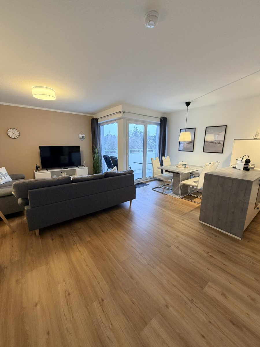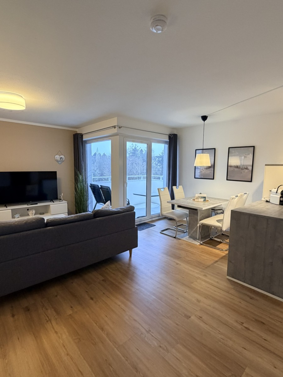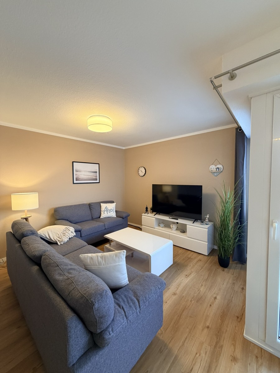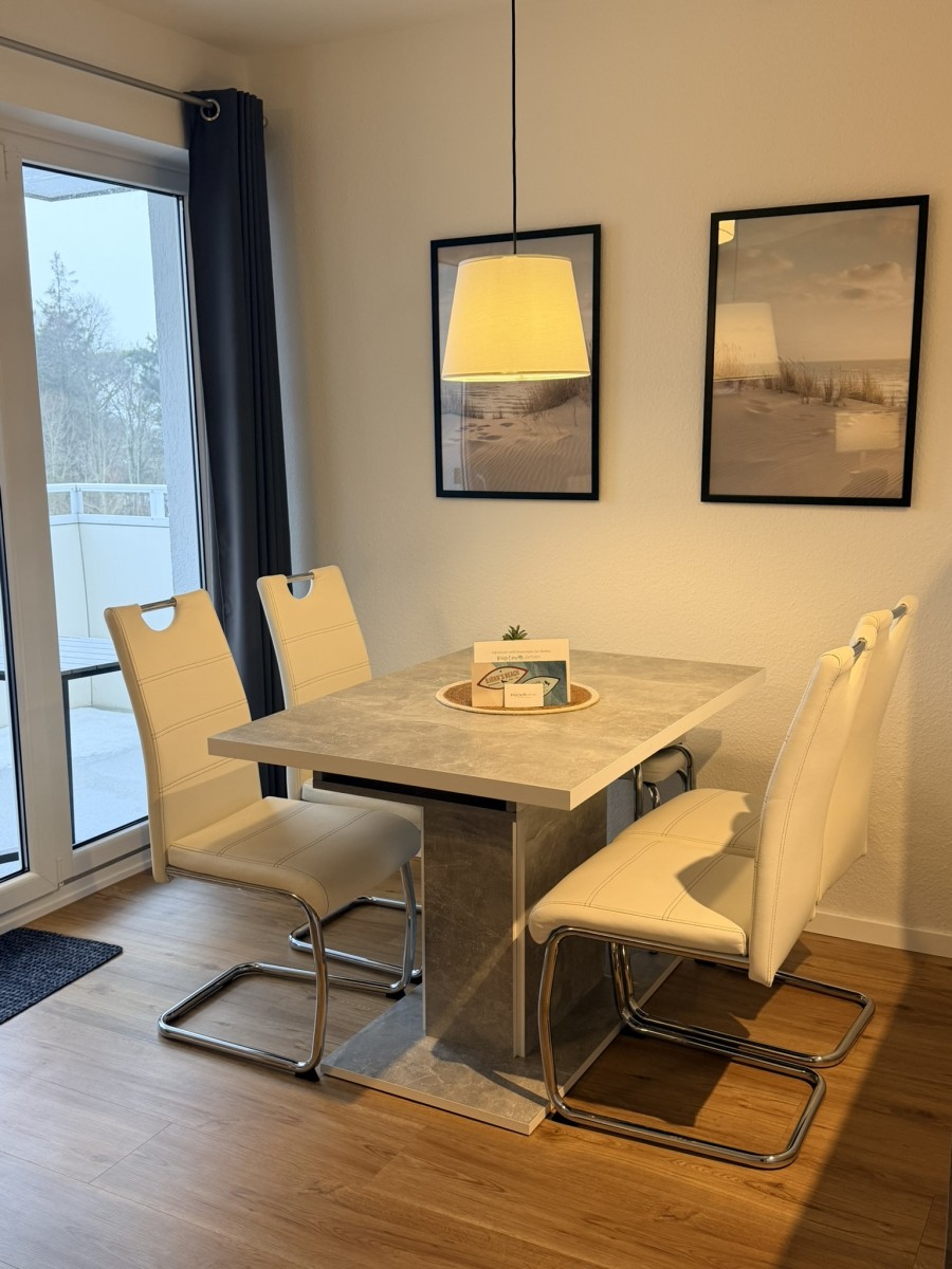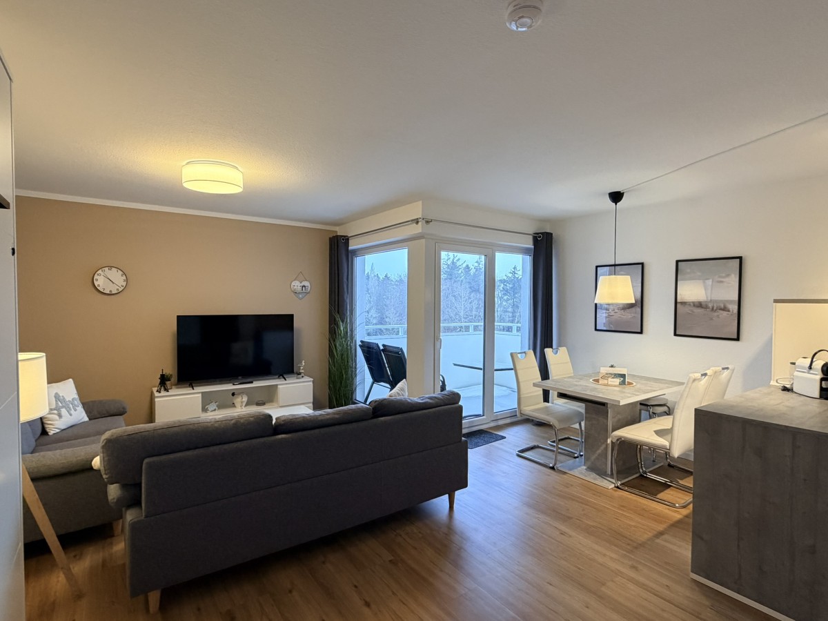 Willkommen in dieser stilvollen, gemütlichen und ruhigen 2-Raum-Ferienwohnung im Haus Poseidon, die Ihnen auf 48 m² alles für einen unvergesslichen Urlaub bietet. Die Wohnung liegt in der 4ten Etage und besticht durch eine traumhafte Aussicht sowie einen Balkon, auf dem Sie die frische Luft genießen können. Der Strand ist nur 200 Meter entfernt, und ein Fahrstuhl bringt Sie bequem bis in die 3te Etage, das letzte Stockwerk erreichen Sie dann über das Treppenhaus.